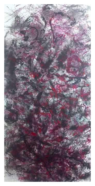 《百态系列》则以更为抽象的语汇探索形态的边界。绳团砸印于纸面所形成的痕迹,似虫似鸟、亦如幻如字,不予明确指涉,却赋予观众广阔的想象与解读空间。在偶然性的生成中蕴藏着艺术家对“心象”的掌控,展现出微观形态中的生命节奏与视觉动感。